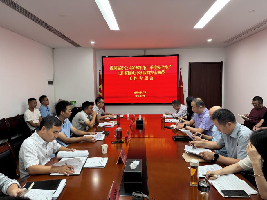 9月22日下午,磁湖高新公司召開2025年第三季度安全生產(chǎn)工作暨國慶中秋假期安全防范工作專題會。公司黨委班子成員、各部室及子公司中層以上人員、項目安全管理員參加會議。
