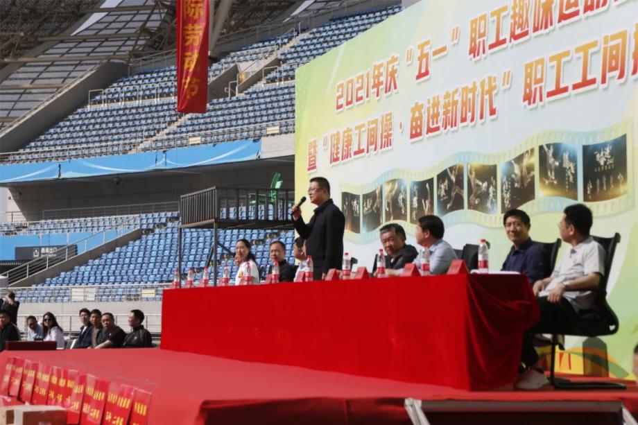 4月29日,開發區·鐵山區2021年慶“五一”職工趣味運動會暨職工工間操比賽,在黃石奧體中心舉行,區“四大家”有關領導、磁湖高新公司董事長出席開幕式。