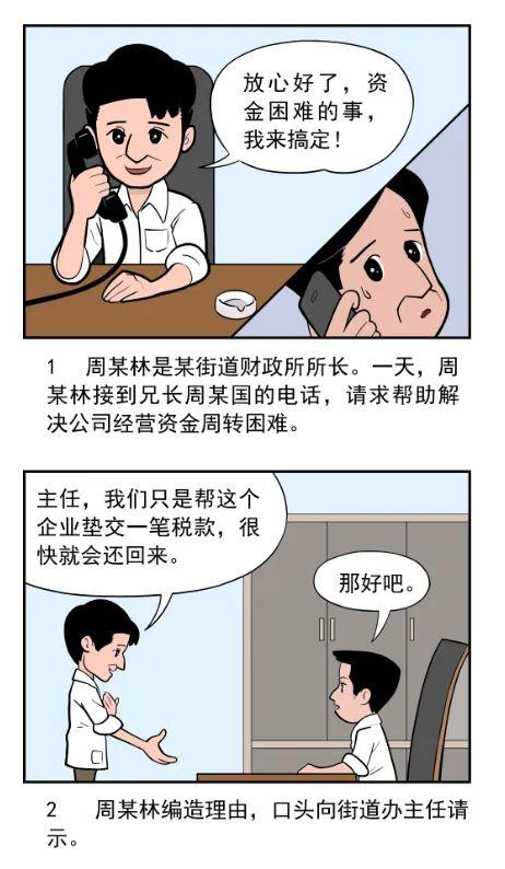 2015年5月8日,時任Y市某街道財政所所長周某林為幫助解決其兄長某公司法定代表人周某國經營周轉困難,周某林向街道辦事處主任口頭請示后,以為企業墊交稅款為名,安排工作人員將該街道辦事處財政資金一百萬元轉賬至其兄長公司賬戶,并約定一月內歸還。同月15日、22日,周某國通過公司賬戶和其個人賬戶分兩筆各五十萬元將資金歸還。